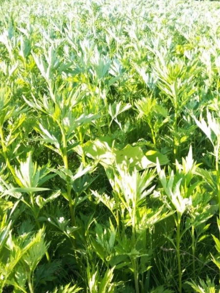 耕作地に自生している「ヨモギ」は生育も良く青々しています。